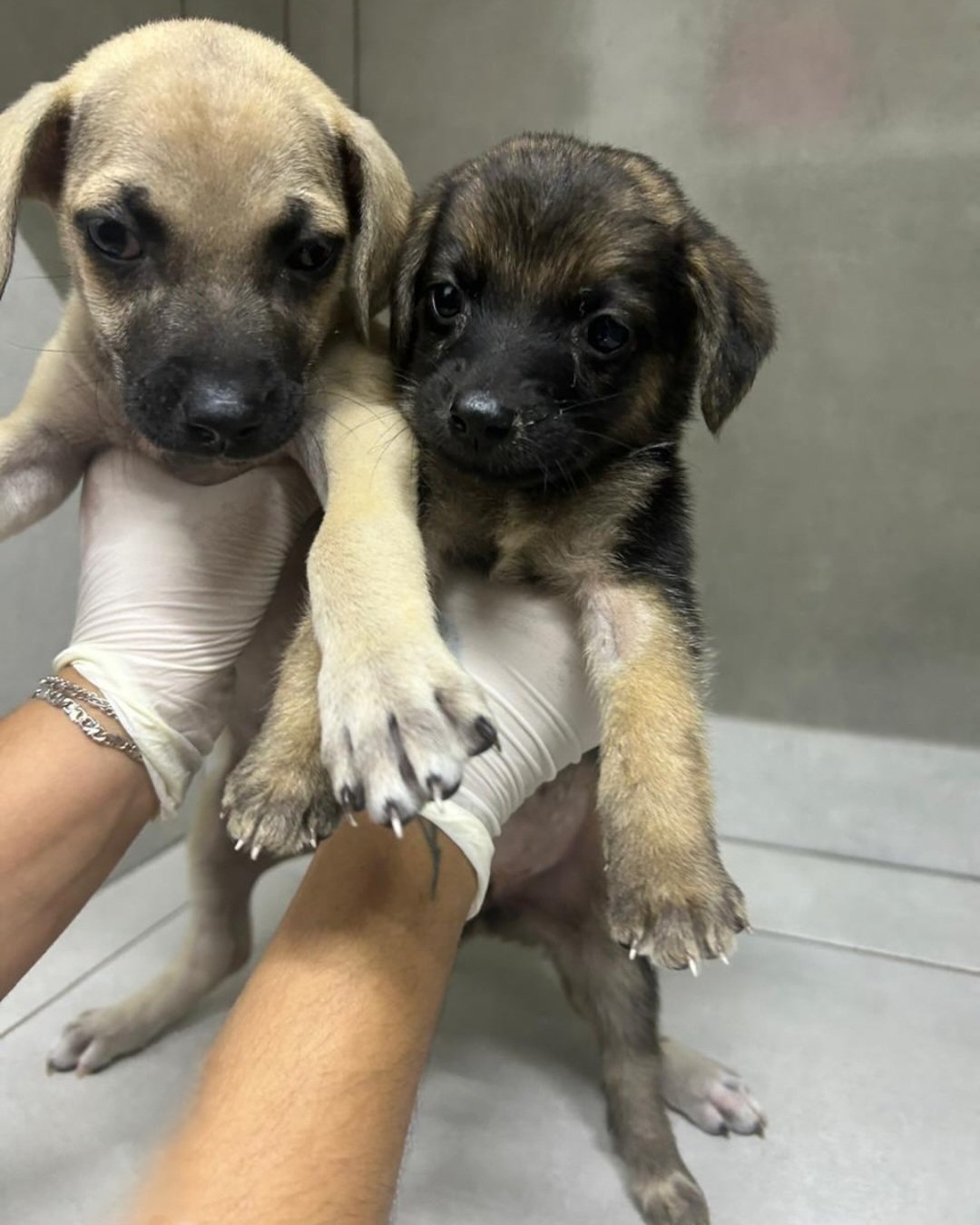Somos a Docinho e a Florzinha, fomos resgatadas após sermos abandonadas, éramos bebezinhas muito pequenas. Nós tínhamos uma irmãzinha, a Lindinha, ela foi atropelada e ficou com o olhinho saltado para fora, infelizmente quando as tias vets foram fazer a cirurgia dela, ela não resistiu 🙁 Nós estávamos anêmicas, desidratadas, com pulgas, carrapatos e vermes. As tias cuidaram de nós e já estamos prontas para encontrar novas famílias.
