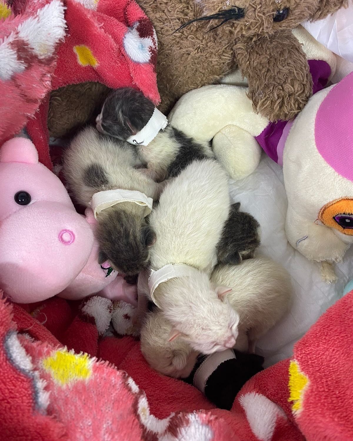 Fomos resgatados após sermos abandonados dentro de uma caixinha, ao lado de um comércio, ainda estávamos com o cordão umbilical, mas sem nossa mamãe. Estávamos morrendo de fome e gelados, se as tias não tivessem ido nos buscar, não iríamos sobreviver. Já crescemos, estamos fortes e saudáveis. Podemos ir pra sua casa após a vacina e castração.