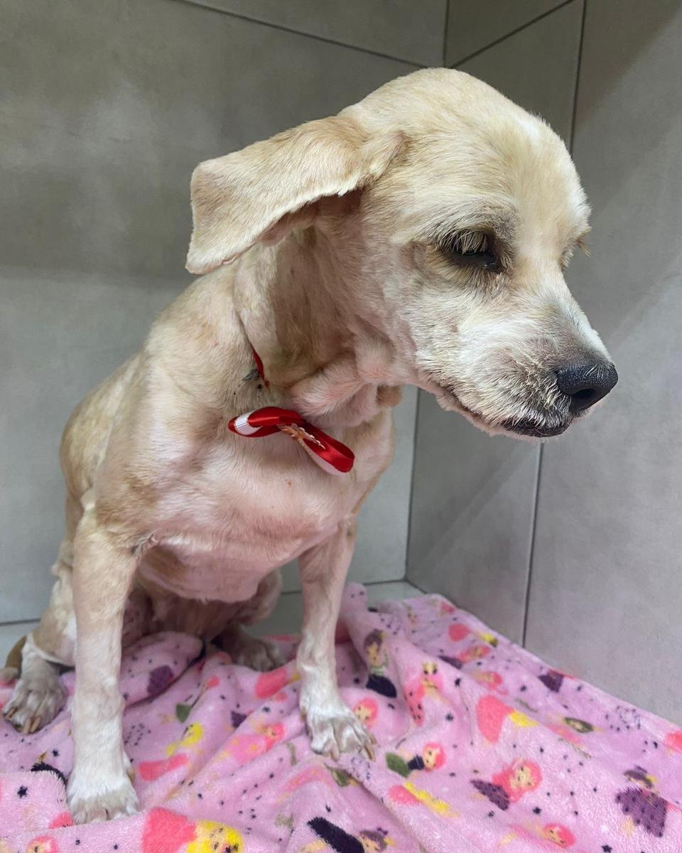 Fui resgatada após ser descartada com os pelos todos embolados e infestada de pulgas, estava mais de 30 graus e eu me escondendo embaixo dos carros no asfalto quente quando as tias foram me buscar. Já sou uma idosinha e estou com doença periodontal grau 3, sentindo dor. Precisarei de exames e tratamento, você pode ajudar?